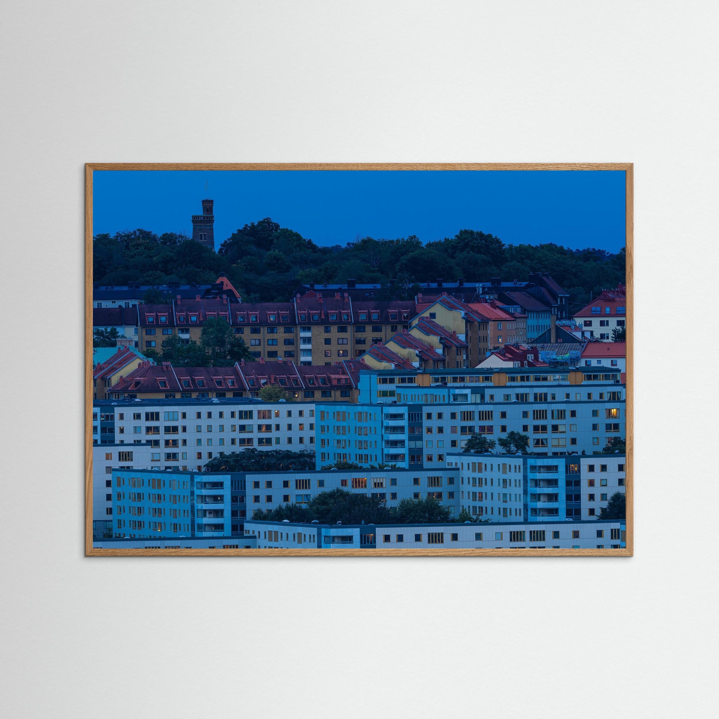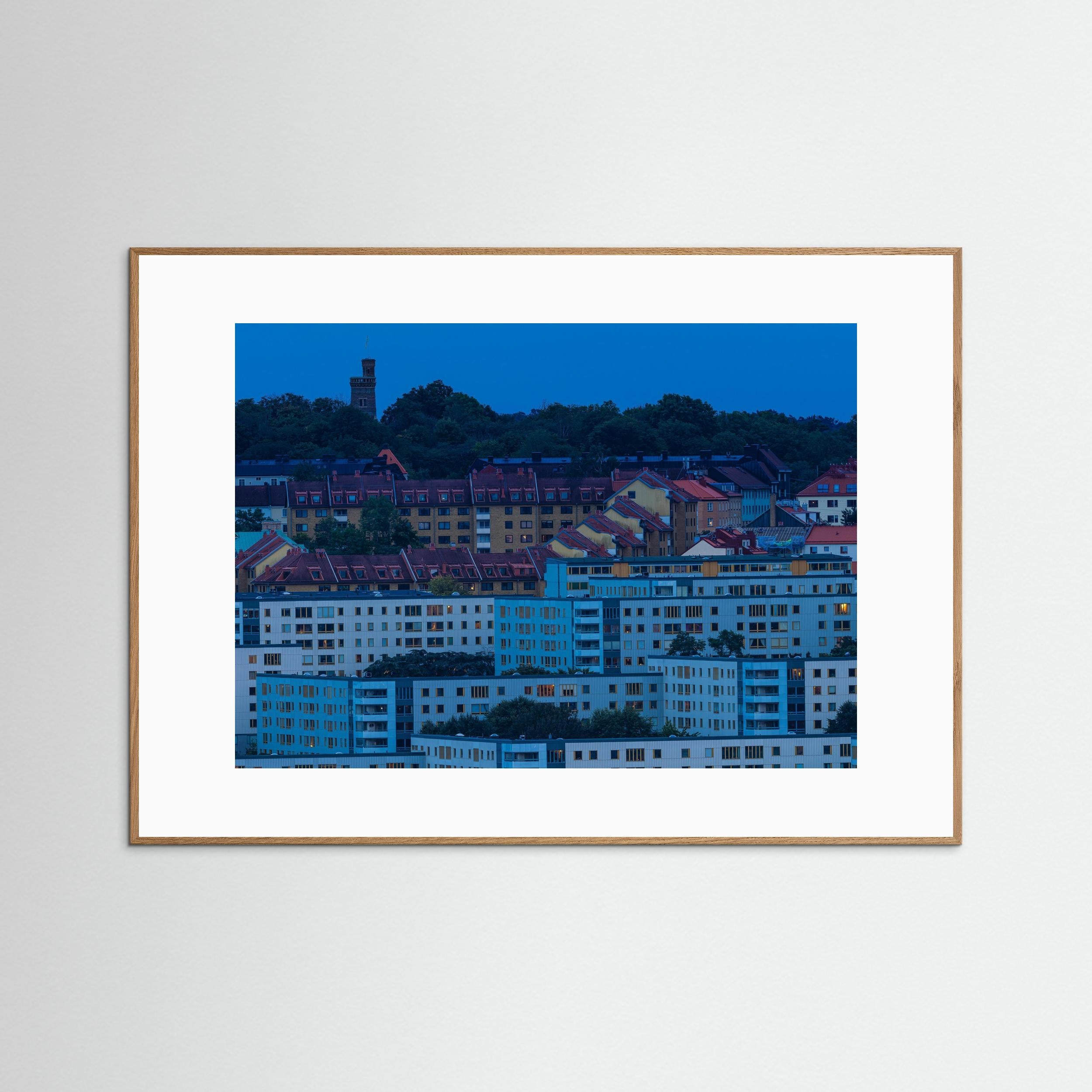 Fotografiet passar utmärkt som fine art print eller canvas och fungerar särskilt bra i större format där stadens struktur och detaljer kommer till sin rätt. Fotograferad 30 augusti i Masthugget i Göteborg.